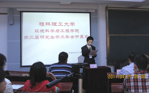 朱义年副院长发表讲话,他说,研究生学术年会给在校研究生提供了一个很好的交流平台,同学们要积极参与其中,提高自己的科研学术能力。希望在同学们的努力下,使研究生学术年会越办越好。