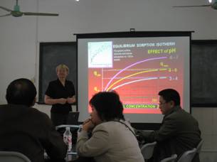 会议室为广大师生做了题为“Past, present and prospects of zeolitic materials” (沸石材料的过去,现状及前景)的学术报告。Chmielewská的报告详细介绍了沸石材料的产地,表面特性,以及在环境保护领域的应用前景。会现场气氛热烈,尤其是她渊博的知识和丰富的实践经验得到与会师生的热烈掌声。Chmielewská教授主要从事环境材料化学与固体废弃物管理方面的研究工作。