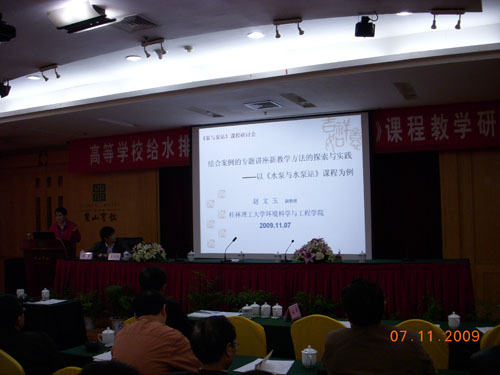 赵文玉和周自坚两位老师出席了本次研讨会,赵文玉副教授做了题为“结合案例的专题讲座新教学方法的探索与实践——以《水泵与水泵站》为例”的课程教学经验交流报告,获得了出席的各位老师的好评。