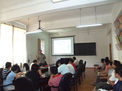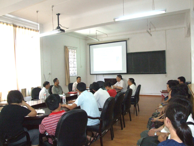 领导、教师及研究生参加了报告会。李庄杰终身副教授以幽默风趣的语言详细介绍了采用FTIR—ATR技术对水中挥发性有机物的原理、最新的研究成果及应用前景,为师生们奉献了一场精彩的学术报告。李庄杰终身副教授的学术报告使在场师生深受启发,报告结束后,师生们纷纷举手提问,李教授就同学们提出的问题一一作了详细的解答。