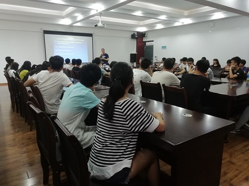 讲座伊始,李庄杰教授结合自己多年的教学和科研经验就废水中有机污染物的危害和光分解的意义及原理进行讲述。随后,李博士从加州的地理位置及其发展;个人对光分解的相关研究及内容;纳米材料与水之间的关系;对太阳能的充分利用等四个方面,让学生更加清晰的了解了光降解在未来的发展潜能及广阔的可研性。讲座现场,大家认真的听取了李博士对光催化处理废水有机物的分析,并对该科研问题的研究前景表示极大信心。讲座接近尾声,大家向李博士请教了光解的相关方面问题,李博士对学生们的问题也都一一悉心解答。