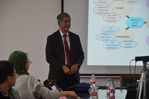 本次讲座中,Geoffrey Sunahara教授以有色金属矿山尾矿毒性对矿山环境的影响及危害为主题,通过分析矿山尾矿地区动植物细胞的含毒性,使同学们了解尾矿重金属污染是影响矿产资源开发的主要环境问题之一,同时,这种问题对动植物的危害性也非常大。其后,Geoffrey Sunahara教授又从多种生物化学试验数据中详细分析并讲述重金属尾矿对土壤的损坏程度,并对有色金属矿山重金属污染状况进行调查、分析和系统的评价,为矿山重金属污染控制和治理提供理论依据,从而减少矿产资源开发导致重金属所含毒性对环境的危害。最后,同学们与Geoffrey Sunahara教授进行现场交流,对所存在的疑感进行了提问,Geoffrey Sunahara教授针对同学们的问题一一作了详细的解答。