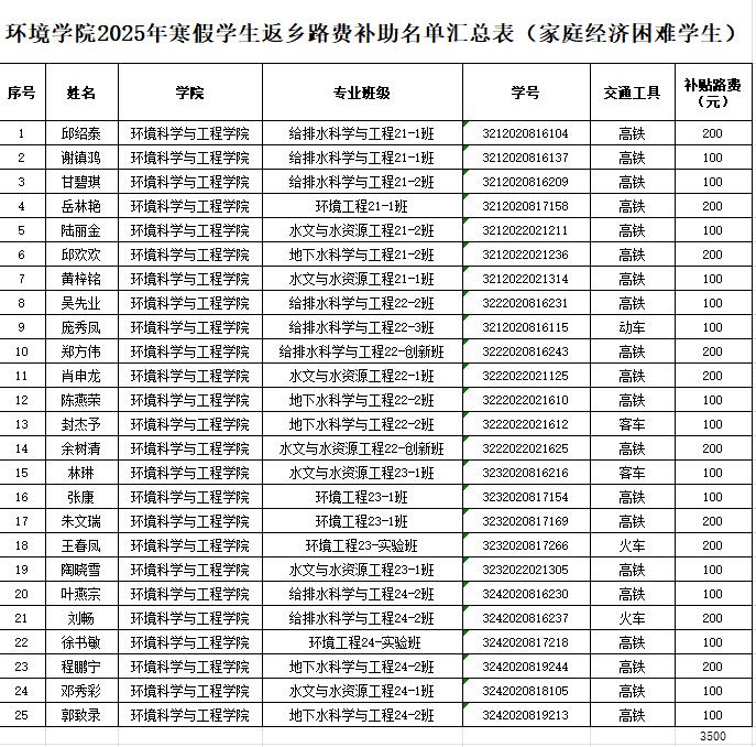 根据学校及学院相关要求,在学生自愿申请的基础上,经学院学生工作领导小组审核,现将寸止挑战 2025年寒假家庭经济困难学生返乡路费补助推荐名单公示。