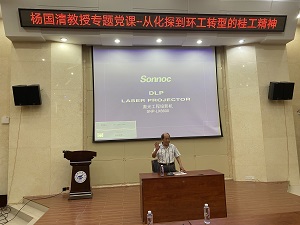 邀请离退休处杨国清教授于6月9日在萃华楼报告讲授“从化探到环工转型的桂工精神”专题党课,120余名师生党员参加。