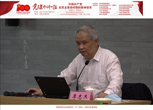 此次云党课由党史学习教育中央讲团成员、中共中央党史研究室原副主任李忠杰教授主讲。课上,李忠杰教授系统回顾了中国共产党在民主革命时期的风雨征程,深刻阐述了中国共产党在领导人民进行新民主主义革命的伟大实践中所形成的以民族独立和人民解放为核心的伟大民族革命精神,再现了中国共产党人为中国人民谋幸福、为中华民族谋复兴的初心使命。李老师从历史的多方面角度深刻思考和总结了中国共产党在民主革命时期的精神谱系,并从“红船精神”“遵义会议精神”“长征精神”“抗战精神”等方面向广大党员阐述了这些精神谱系,让大家深刻了解到民主革命时期中国共产党的历史和精神。