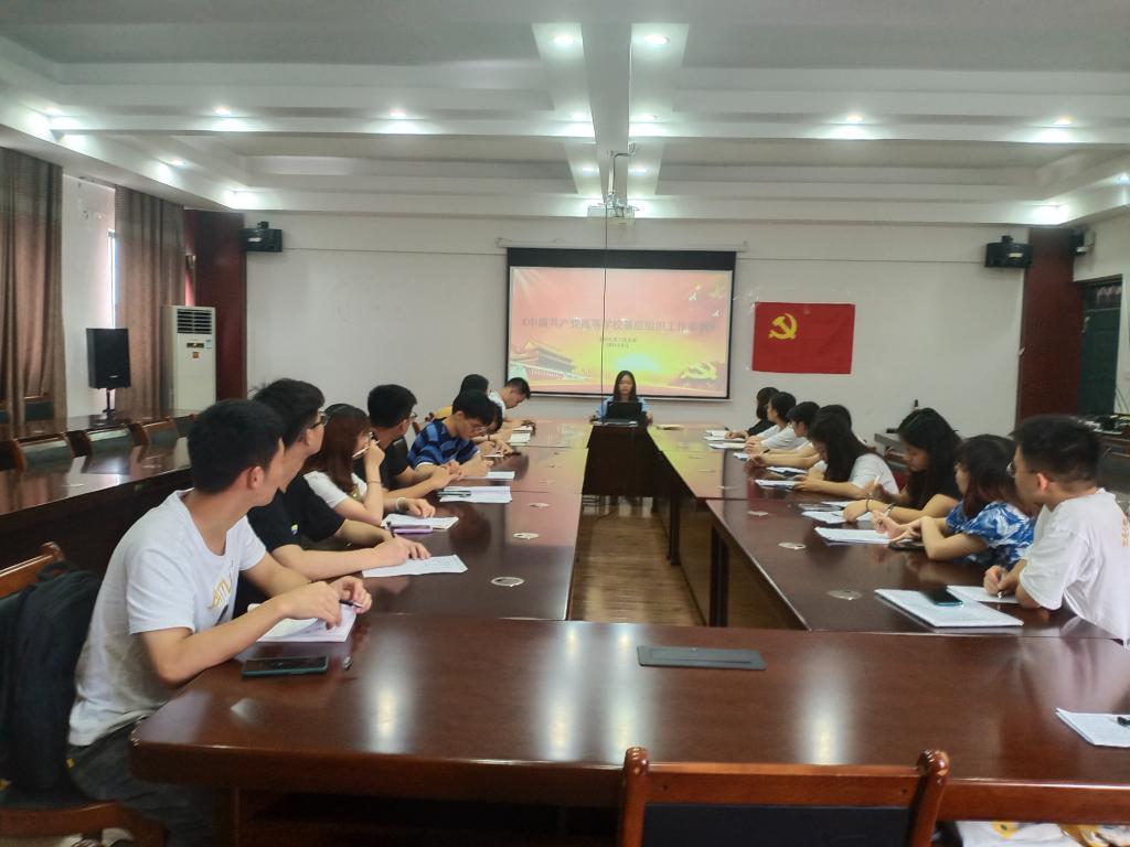 本科生第三党支部于雁山校区12407会议室开展学习《中国共产党普通高等学校基层组织工作条例》党日活动,支部全体党员参加了本次会议。会议由支部副书记韦春伊同志主持。