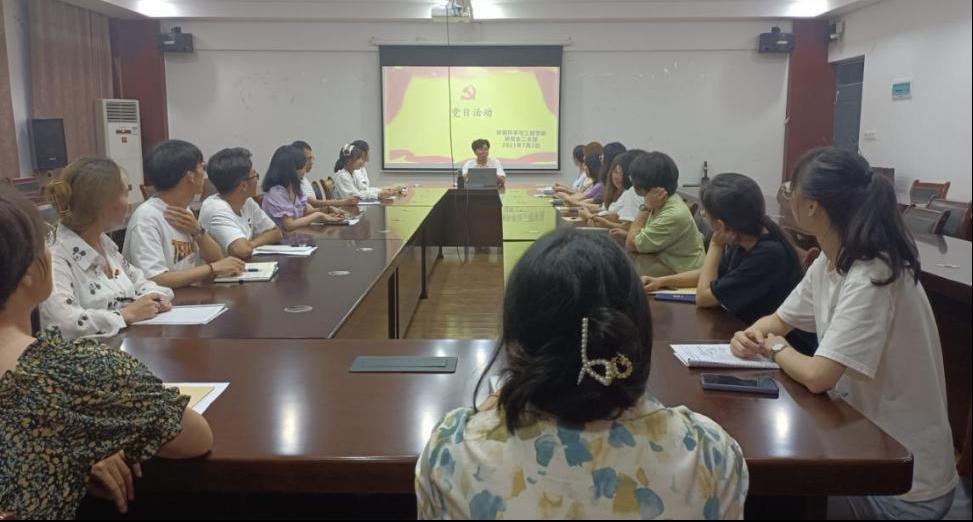 研究生二支部在雁山校区萃华楼12407会议室组织开展“学习习近平总书记在庆祝中国共产党成立100周年大会上的讲话”主题党日活动。支部书记及全体党员参加会议,本次党课由支部副书记主持。