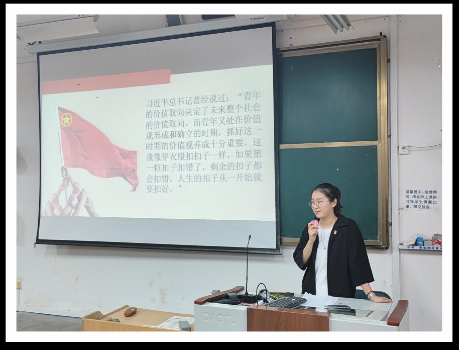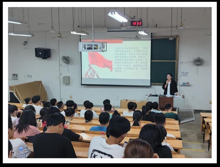 在07502教室举办“无惧选择,坚定自我”主题宣讲会活动,宣讲会由本科生第一党支部的魏学睿同志主讲,150余名同学参加了此次宣讲会。
