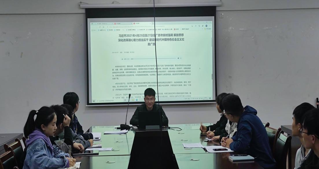 本科生第一党支部在12407会议室召开以“学习习近平总书记视察广西时的重要讲话”为主题的学习活动,会议由支部书记潘泓序老师主持,支部全体党员参加活动。