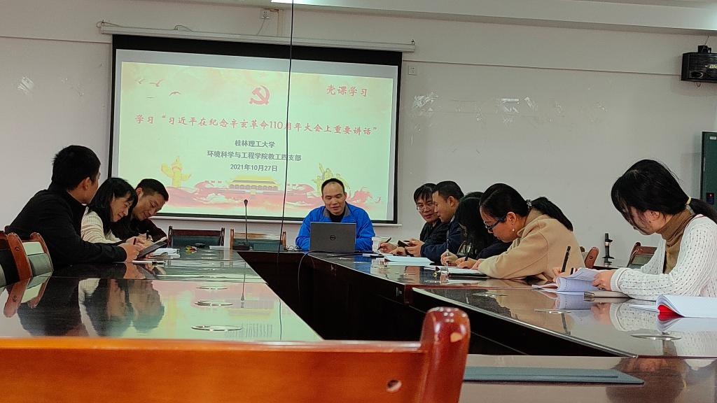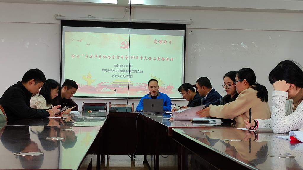 教工四支部在雁山校区12407会议室开展《学习“习近平在纪念辛亥革命110周年大会上重要讲话”》党课学习,本次党课由梁延鹏同志主持,在集中学习过程中,党支部同志对党课学习内容进行了讨论,并相互分享了学习心得。