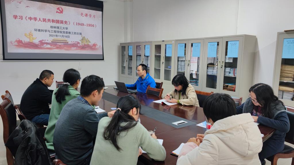 教工四支部在雁山校区12414会议室开展《中华人民共和国简史》专题学习,本次党课由梁延鹏同志主持,在集中学习过程中,党支部同志对党课学习内容进行了讨论,并相互分享了学习心得。