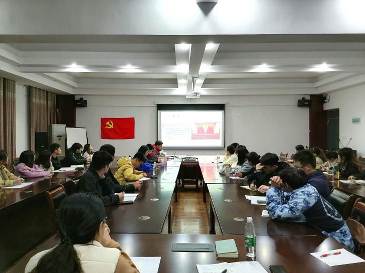 本科生第二党支部于萃华楼12407开展学习“十九届六中全会精神”主题党课,本次会议由支部书记唐源江主持,支部全体党员、预备党员、发展对象积极参加。