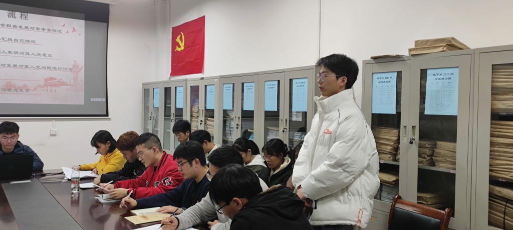 11月25日晚,我院本科生第一党支部在12414会议室召开预备党员接收大会,会议由支部书记潘泓序主持,支部全体党员及发展对象参与此次大会。