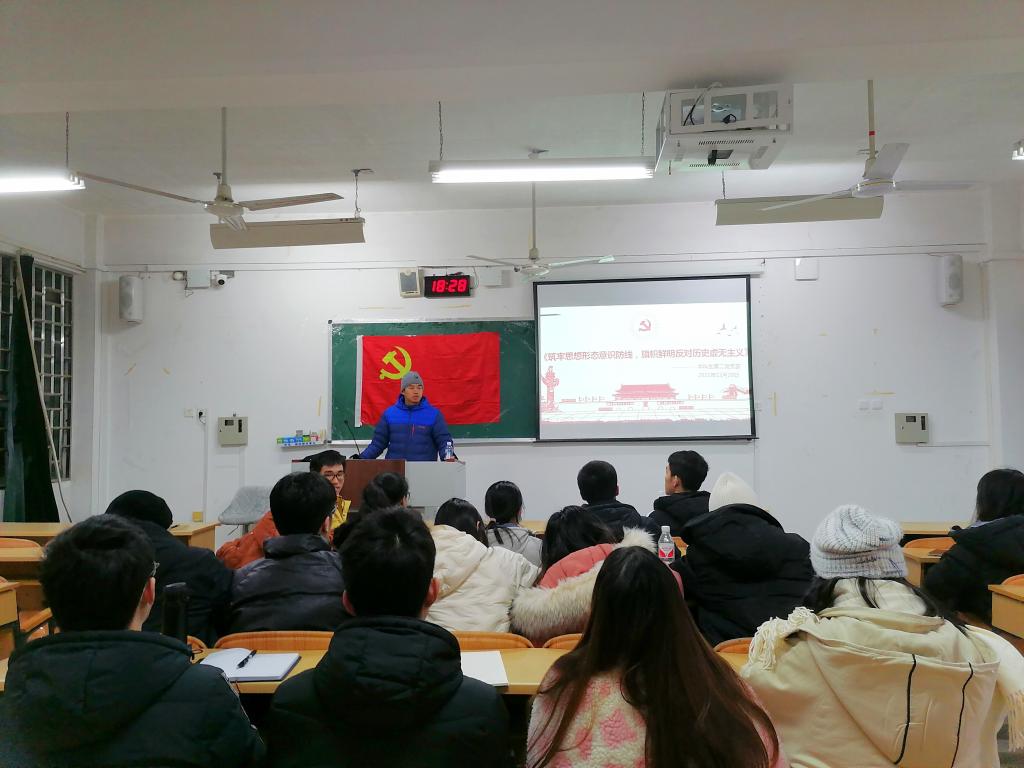 本科生第二党支部于05302开展“铸牢思想形态意识防线,旗帜鲜明反对历史虚无主义”主题党课。本次党课由杨智钧同志主讲,支部部分党员及预备党员积极参加。