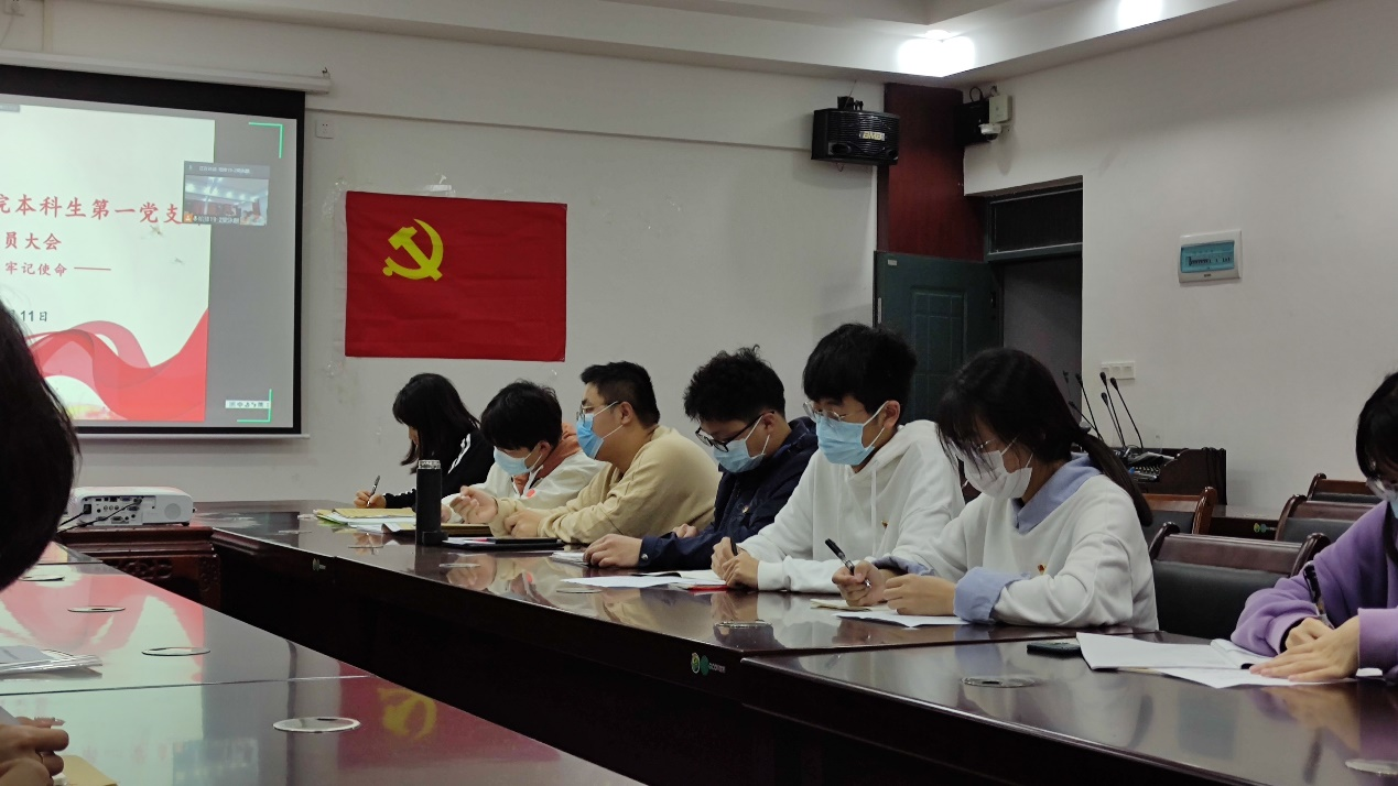 本科生第一党支部于3月11日晚在12407会议室召开全体党员大会。支部全部党员参加会议,会议由支部书记潘泓序主持。