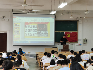 课堂上,唐源江老师主要从“中国共产党创立的原因”“中国共产党创立的发展历程”以及“党领导中国革命和建设胜利的基本经验”三大方面讲述了中国共产党的创立、发展及其成就,唐源江老师以历史发展为主旋律,结合作为一名党员的思考,全面客观地论述了中国共产党的过去与未来,将期望寄予当代青少年,具有深刻的教育意义。他强调:中国共产党的创立并非是一蹴而就的,而是革命先辈们以血肉之躯铺垫而成的,中国共产党是一支优秀的政党,源于人民,服务人民,领导人民。同时勉励同学们牢记党史,学习先辈们英勇无畏的大革命精神和敢开先河的创新精神,不忘初心、牢记使命。会议最后,唐源江老师以短片《革命》作结,并指出新时代青年应坚持党的领导,顺应时代发展,紧跟时代浪潮,为中国共产党的发展不断注入新鲜的动力。