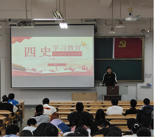 党课开始,杨平平老师开门见山指出:“四史”,包含“党史”“新中国史”“改革开放史”以及“社会主义发展史”。”四史“是一部中国共产党为中国人民谋幸福、为中华民族谋复兴、为世界谋大同的实践史。随后,杨平平老师从四史的重要性、基本脉络、逻辑关系以及根本关系等多个角度,结合历史发展进程,多层次论证应继续贯彻落实四史学习教育,教育当代青年应该学习贯彻党的创新理论,武装思想,不忘初心,勇担使命。他强调:青年通过“四史”教育,可以熟知过去的历史,通过历史的教育吸取革命教训,了解革命先辈的感人事迹,明确自身的根和源,理解当下生活和建设祖国的意义,珍惜新时代社会的稳定与和平。激发内心的红色基因,增强对我国制度的自信和民族的自信心。最后,杨平平老师通过短片《百年瞬间》,结合习近平总书记重要讲话,再一次强调开展”四史“教育的重要性。