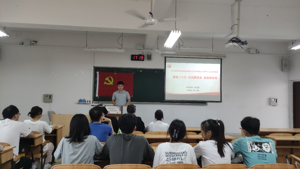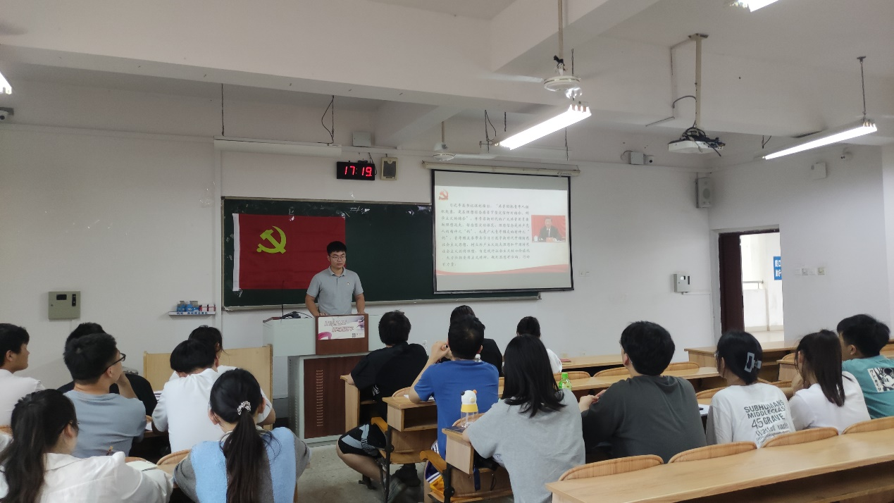 本科生第一党支部于5月30日下午在06306教室开展《学习习近平在庆祝共青团成立100周年大会的讲话》主题党日活动,活动由支部书记潘泓序老师主持,支部全体党员同志参加本次活动。