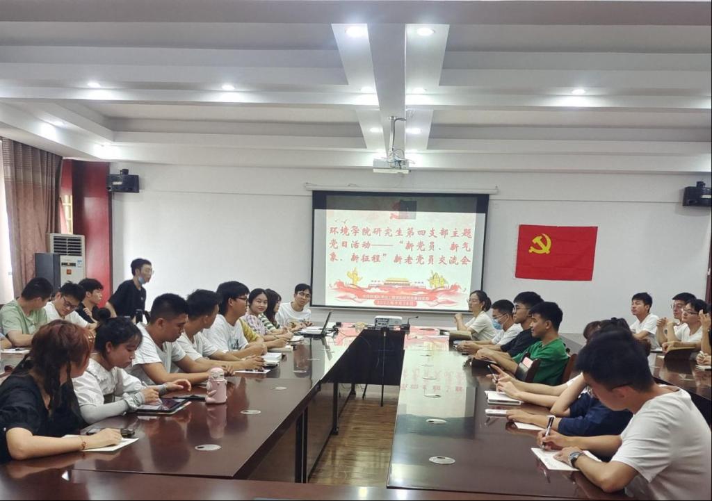 研究生第四党支部在雁山校区12407会议室召开主题党日活动——“新党员、新气象、新征程”新老党员交流会。支部全体党员参与本次活动,活动由党支部副书记石谦同志主持开展。
