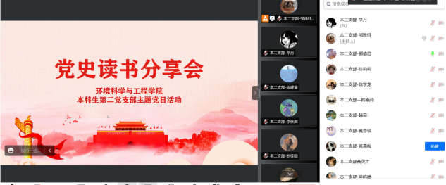 本科生第二党支部开展“党史读书分享会”主题党日活动,本次党日活动采取线上交流的形式。支部党员、预备党员及发展对象积极参加。