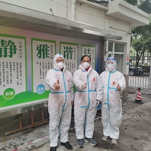 教工第三党支部于晓章,魏建文,蒋金平,张文杰等教师本着“疫情就是命令,防控就是责任”作为初心和使命,不惧风险,奋勇“逆行”,舍“小家”,顾“大家”,积极响应国家和学校号召迅速投入到一线防控工作中。他们穿戴好防护用品,有序投入到防疫宣传、人员登记、体温测量、信息收集、人员隔离、秩序引导、分类筛查及生活必需品代购配送及上楼送餐等疫情防控措施和活动中。他们不辞劳苦,用实际行动积践行党员的先锋模范作用,为师生们生命安全和身体健康保驾护航。