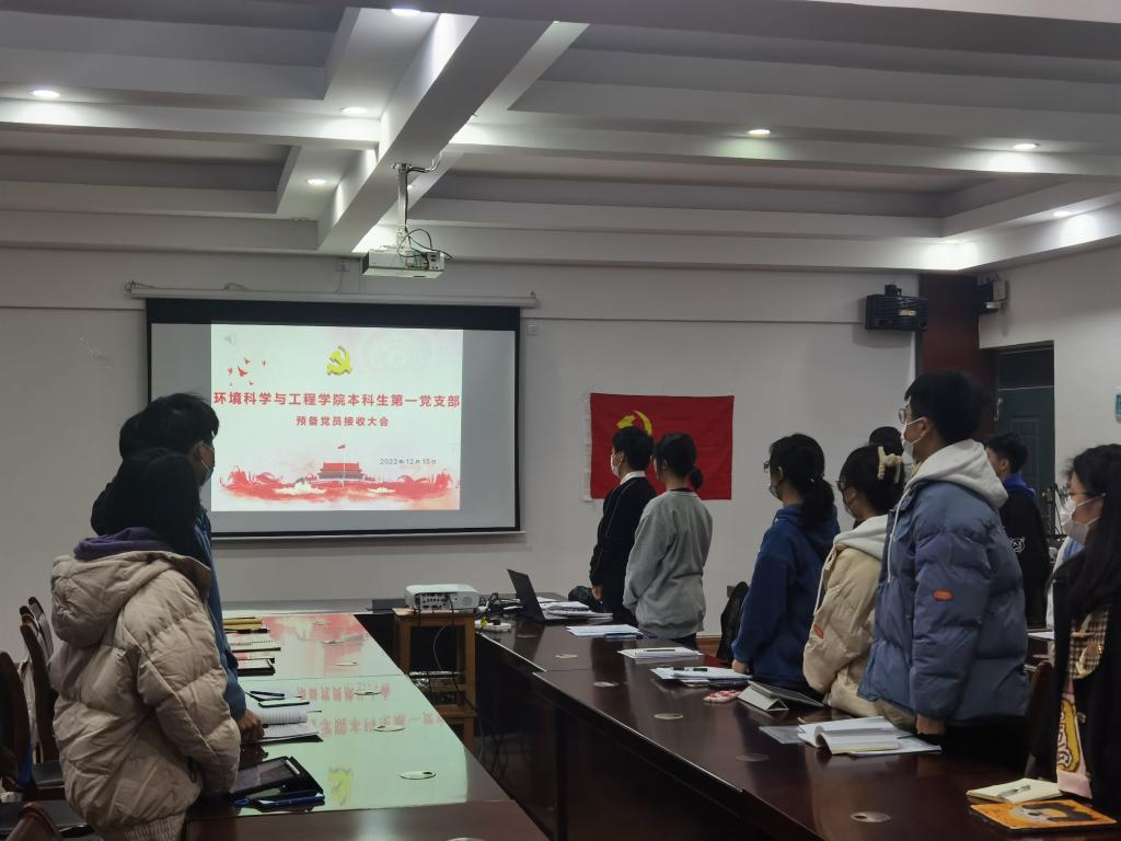 本科生第一党支部于在12407会议室召开预备党员接收大会,讨论关于接收晁佳宣等9名同志为预备党员的问题。本次会议由支部书记潘泓序主持,全体党员参加会议。