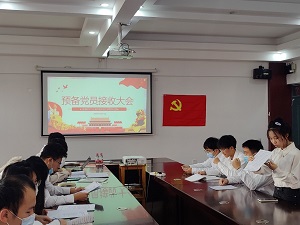 本科生第四党支部于雁山校区12407会议室召开2022年秋季学期预备党员接收大会。会议由党支部书记杨平平老师主持,支部全体党员同志参与本次会议。本次会议的议题是讨论关于陈晓婷等五名发展对象按期接收成为中共预备党员的问题。