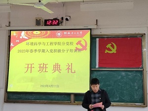 典礼在庄严的国歌中正式拉开序幕,与会全体成员起立,奏唱国歌。开班仪式上,学院党专职组织员杨平平宣读了《学院入党积极分子培训工作方案》,对培训活动进行了具体安排,阐明举办本次培训班的目的和意义是培养学员爱国爱党精神,教育学员增长党史知识。并对培训班的考勤、纪律等进行了通报和要求。学员代表环工22-实验班学生王钰童发言,她号召全体学员认真学习党的理论知识,积极参加培训班组织的各项活动,自觉遵守培训纪律,圆满完成各项培训任务。