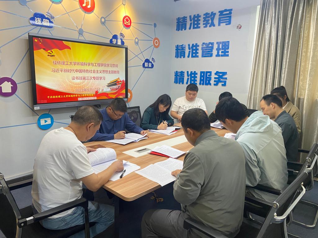 5月12日上午,环境学院党委领导班子“深入学习贯彻习近平新时代中国特色社会主义思想,坚定信心步调一致汇聚学院高质量发展强大合力”读书班第三次专题研讨学习会在雁山校区萃华楼12408大数据工作室举行。环境学院党委领导班子、党支部书记参加会议,学习会由学院党委书记姜子亮主持。