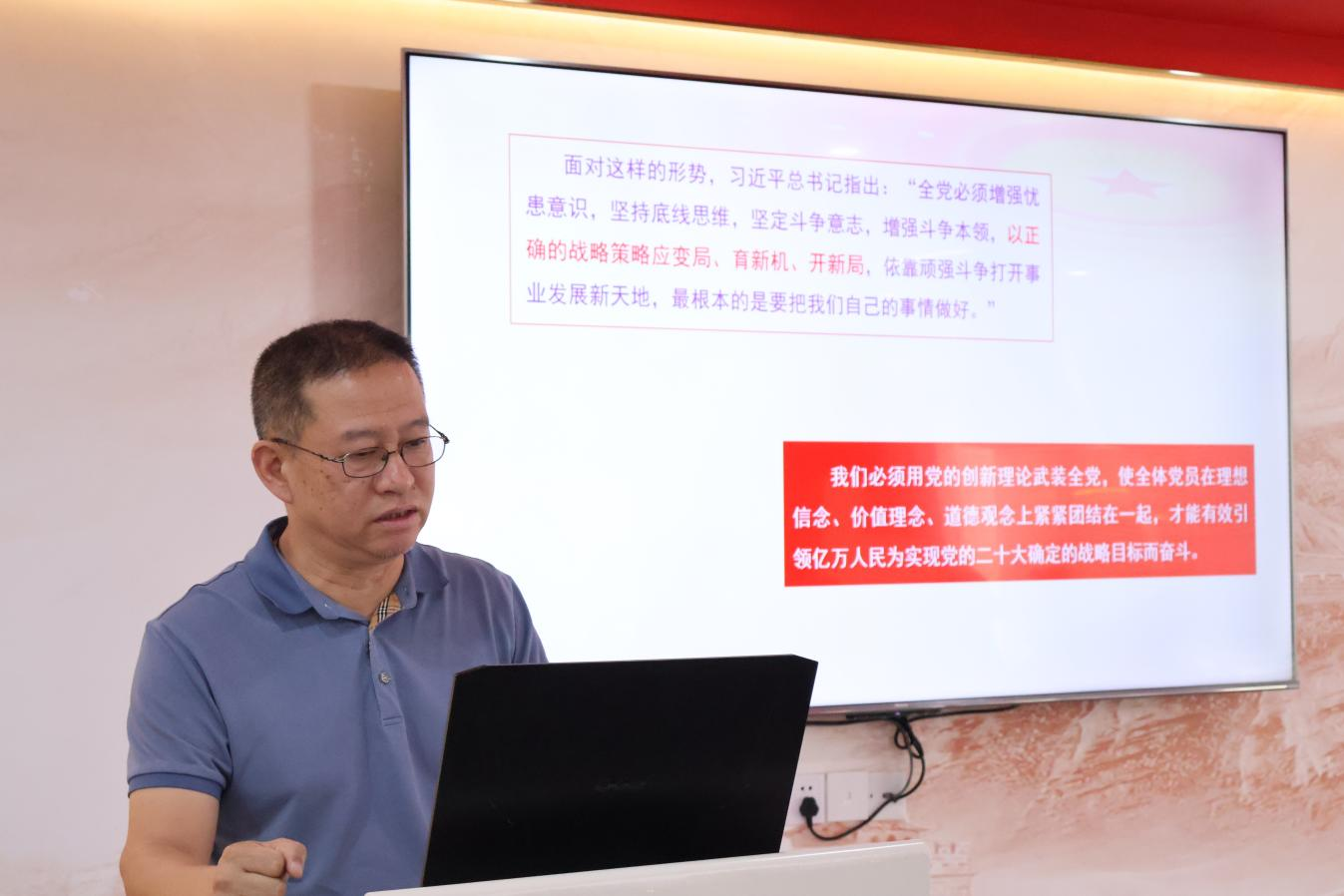 在明园一站式思政大讲堂开展“作为大学生要做学习贯彻习近平新时代中国特色社会主义思想的排头兵”专题党课,由学院党委书记姜子亮主讲,各支部党员及预备党员参加。