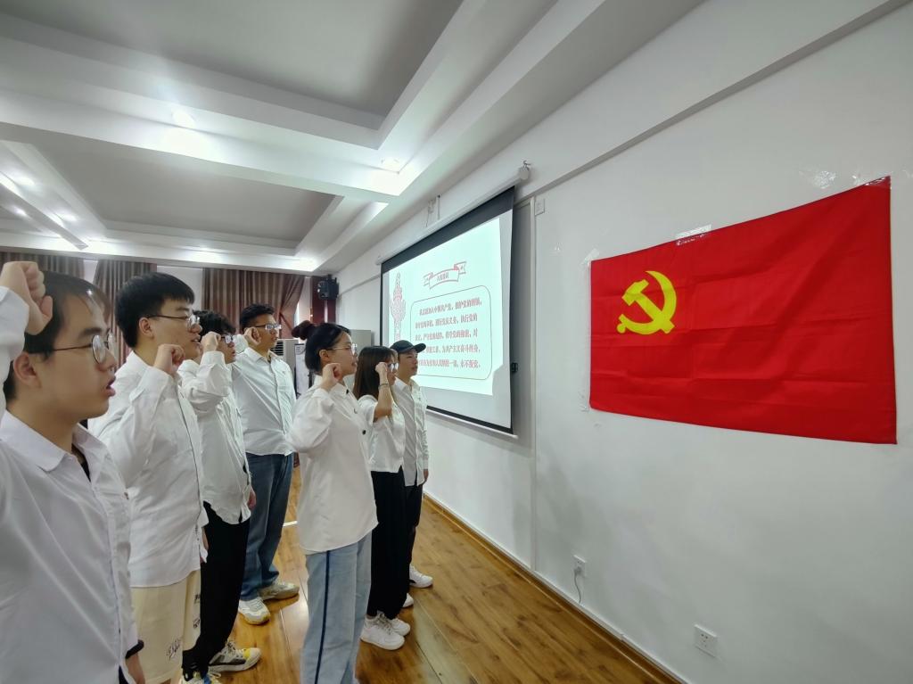 最后,在党支部书记杨平平老师的带领下,全体党员同志起立,面向党旗庄严宣誓,共同重温了中国共产党入党誓词。