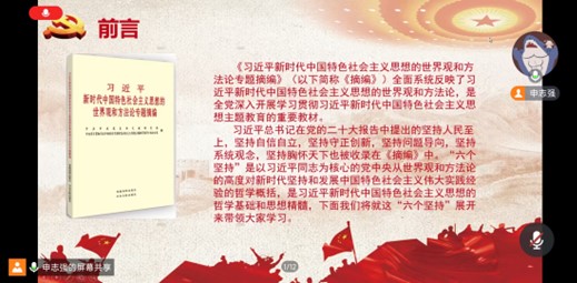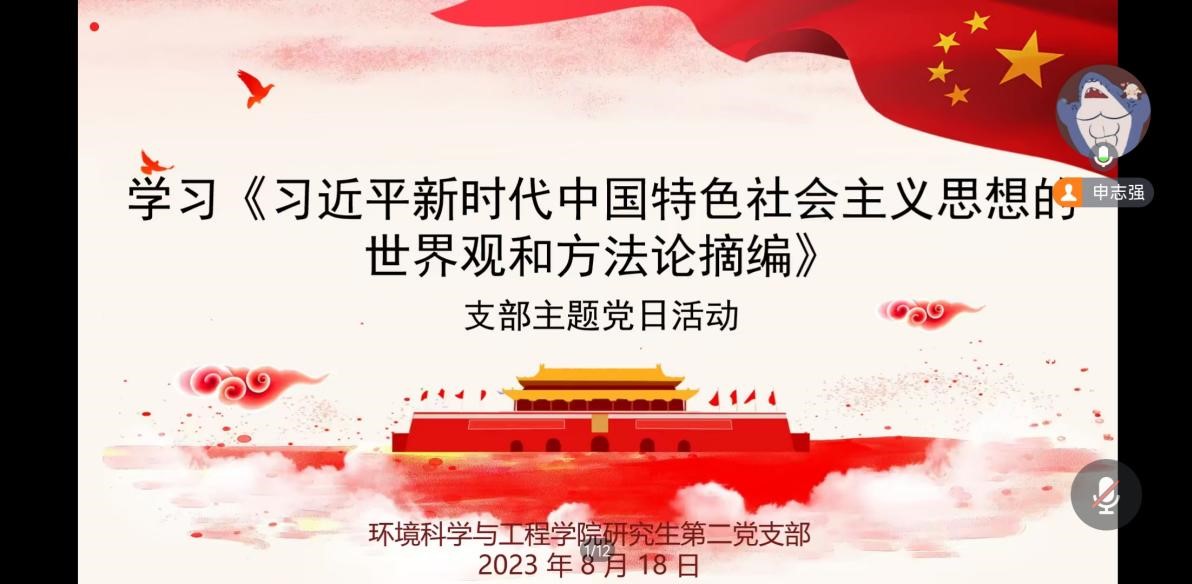 研究生二支部组织开展了以“学习《习近平新时代中国特色社会主义思想的世界观和方法论摘编》”为主题的党日活动,支部书记及支部全体党员同志参加会议,本次党日活动由支部副书记主持。