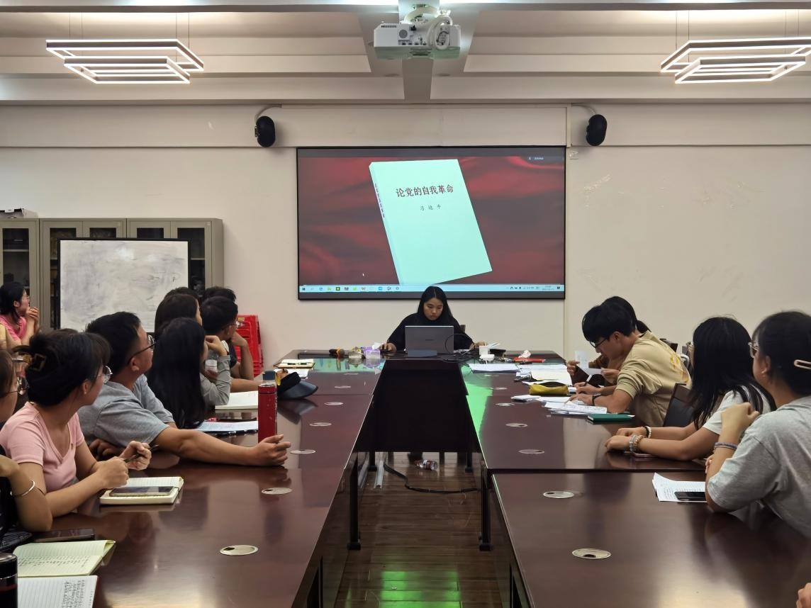 研究生二支部在雁山校区萃华楼12407会议室组织开展学习习近平总书记《论党的自我革命》专题学习活动,支部书记及支部全体党员同志参加,本次主题党日活动由支部副书记主持。