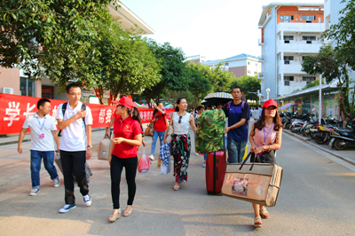 党员迎新服务志愿者字样的红色衣服,从迎新咨询到报到引导,从耐心解答到行李搬运,党员志愿者们发扬奉献、友爱、互助的精神。一遍遍的解答,一次次的引导,一趟趟的搬运,不畏辛劳和疲惫,党员志愿者们始终用微笑迎接着新生和家长的到来。在引领着新生领取宿舍钥匙以及送新生到宿舍的途中,志愿者本着尽职尽责、用心服务的原则为新生及家长提供帮助,解决难题,同时为他们介绍刚入大学的注意事项,学校生活,以及学校学院的整体概况等。他们饱满的热情,周到的服务让新生和家长感受到了温暖,给他们留下了深刻的印象。这充分展现了当代大学生党员的奉献精神和青春风采,同时也使他们得到了一次有意义的锻炼,他们贴心的服务受到了新生和家长的好评。