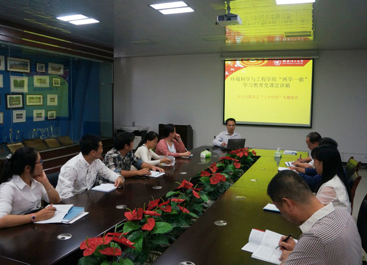 教工党员四支部在雁山12310会议室举行学习党的十八大报告之“三个自信”专题党课活动,由支部书记梁延鹏做专题报告,引领全体党员学习领会党的十八大报告中关于“三个自信”详细论述。