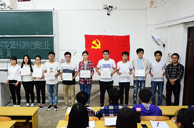 为激励在此次培训中表现突出、成绩优异的同学,黎云鹏老师和王成圆老师为入党培训班的优秀学员颁发了奖状,其中,寸止挑战