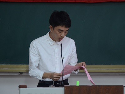 学员代表黄林俊同学发言,他阐述了作为积极分子应当承担的职责与义务,并代表党校十七期所有学员向组织表态:努力向党靠拢,力争早日加入中国共产党。