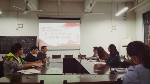 研究生第二党支部在九栋玻璃房组织开展了学习党的十九大精神会议。会议由党支部书记唐红兵老师主持,全体在校支部党员参与会议。