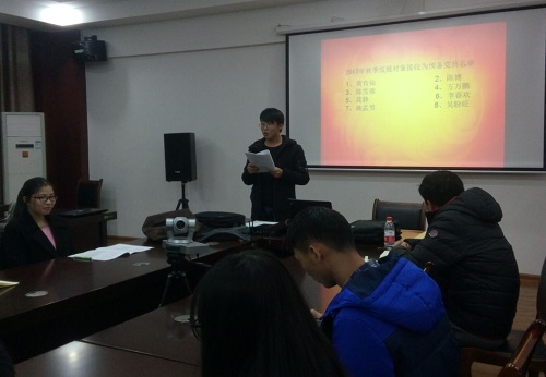 会议讨论了黄有仙、陈博、陈雪蓉、方万鹏、姚孟男 、吴盼旺六名同志的入党问题,另外龚静和李春欢两名同志在南宁进行讨论。大会由党支部副书记黄明辉主持。 本次转正大会,我们学生一支部成功接收了八名预备党员。党支部注入了新鲜的血液,进一步扩大了党员队伍,此次会议严格按照各项程序执行,相信各位党员能够担负起民族复兴的希望,为班级、为学校、为社会做出更大的贡献。