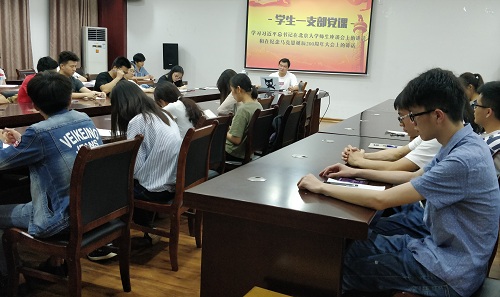 学生一支部在雁山萃华楼12407会议室召开党课学习习近平总书记在北京大学师生座谈会上的讲话和纪念马克思诞辰200周年大会上的讲话,会议由支部书记黄兆凡老师主持,支部党员和拟发展对象听党课。