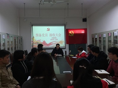 研究生二支部在雁山校区萃华楼12415会议室召开了接收预备党员支部大会。大会由支部副书记赵宁宁主持,各支委和支部党员同志参会。大会主要讨论了关于接收袁武、李琴、刘敏等3名发展对象成为预备党员的相关事宜。