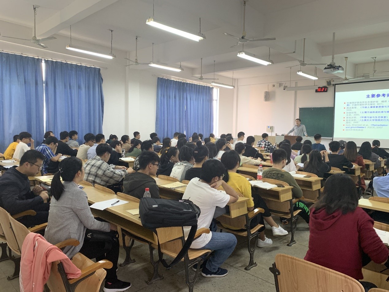 环境工程教研室暨教工第三党支部在雁山校区06602教室举行教学观摩课,何慧军老师主讲《土壤污染与控制》课程,授课班级为环境工程2017-1,2,3班,环境工程教研室教师及教工党员参加本次教学观摩课。