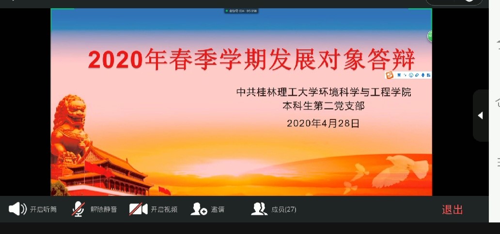 本科生第二党支部通过线上腾讯会议的方式于2020年4月28日组织召开了2020年春季发展对象答辩工作。参会人员由支部书记,支部正式及预备党员,积极分子组成,人数符合会议要求,会议有效。