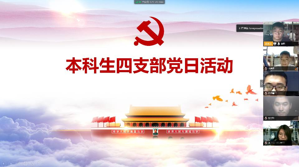 目前,新冠疫情防控依然不能松懈,寸止挑战 本科生第四党支部为进一步贯彻学院党委精神,利用腾讯会议开展主题党日活动,充分发挥党组织的凝聚力,传导先进正能量,为疫情防控营造浓厚氛围。支部于2020年4月30日晚19:00利用腾讯会议召开线上主题党日活动。支部副书记简鹏同志主持会议,全体支部党员和发展对象参加会议。