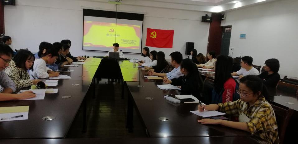 研究生二支部在雁山校区萃华楼12407会议室组织开展了以“担民族复兴大任,做时代新青年”为主题的党日活动。主要内容为学习《习近平总书记9月22日在在教育文化卫生体育领域专家代表座谈会上的讲话 》。支部书记王媛同志及支部全体党员同志参加会议,本次党课由支部副书记董翼同志主持。