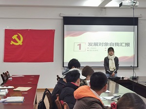 会议伊始,由杨智钧同志宣读会议纪律,并介绍九位发展对象——包浚钦、杨仙美、叶宇航、赵智涌、朱燕、程晨、李明敏、蒋燕虹同志。