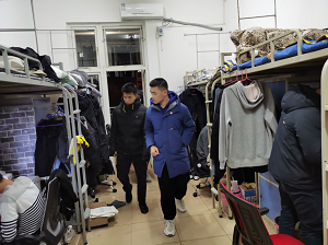 党员与舍管委成员组成的检查小组,进入学生宿舍,进行了服务、安全隐患排查与打分工作,工作现场井然有序。