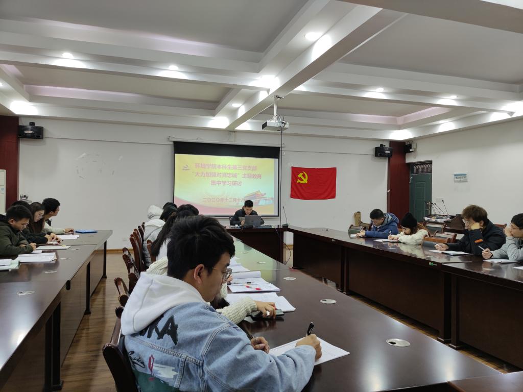 本科生第三党支部在12407会议室开展了“大力加强对党忠诚”主题教育集中研讨,本次党课由支部书记孙云龙同志主持。