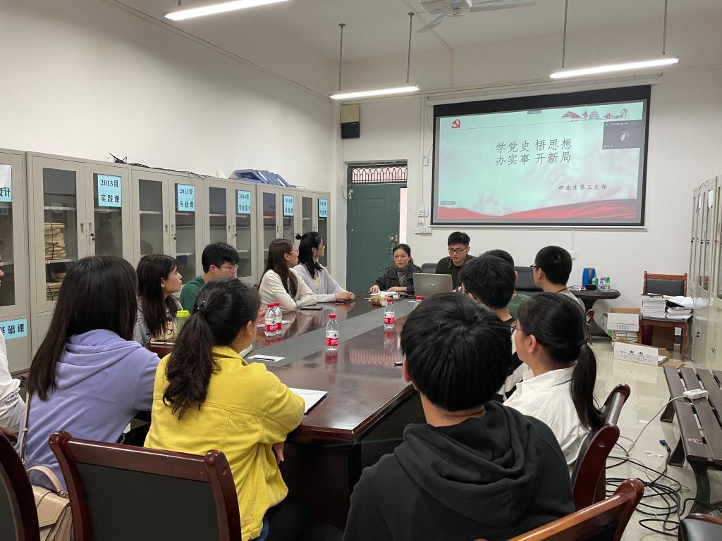 研究生第三党支部在雁山校区12414教室开展“学党史明方向”主题党日活动,进一步增强党员对党史的认识和理解,切实做到学史明理、学史增信、学史崇德、学史力行。本次党日活动支部全体党员以及部分先进积极分子出席。