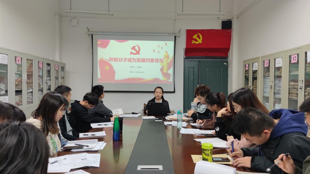 会议开始,张颖颖同志简单说明了答辩流程,强调了本次答辩的重要性,接着参加答辩的十二名同志依次就个人基本情况、入党动机、党性认识与现实表现等方面进行陈述,现场党员根据各位党员发展对象的答辩情况并结合其个人实际进行相关理论知识的提问,进一步考察了党员发展对象的思想政治素质、对党的认识、党的基本知识和时事热点的掌握程度。本次答辩中,各位党员发展对象从容冷静、思维清晰,体现出良好的党性修养与较高的思想觉悟。而后,党支部在场党员根据答辩情况进行无记名投票初步确定了本次党员发展对象入选名单。最后支部书记孙云龙作会议总结,对大家努力学习党的知识的精神给予了肯定,同时指出了答辩存在的问题和需要改进的方面,并对发展对象提出期望和要求。